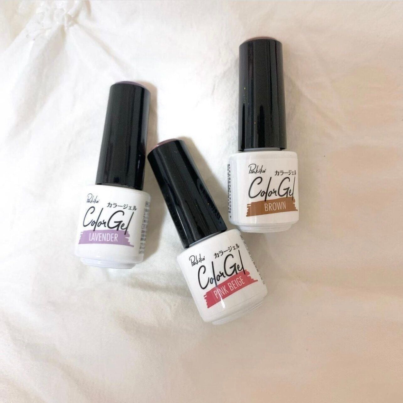 fuu_selfnailさんがキャンドゥで購入したのはカラージェルです。ジェルネイルはマニキュアよりも長い期間ネイルがもつので、家事や育児、仕事で忙しい毎日を送るママさんにピッタリですよね。今回選んだのはラベンダー、ブラウン、ピンクベージュといったおしゃれで肌馴染みのいいカラーみたい。
