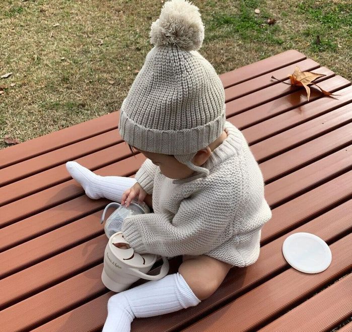 ZARAベビーで展開されているニットの色味が好みというMさんはこちらのコーディネートをセレクト。淡いトーンのトップスやニット帽で落ち着いた雰囲気になっていますよね。まさにインスタ映えなコーディネートです。
