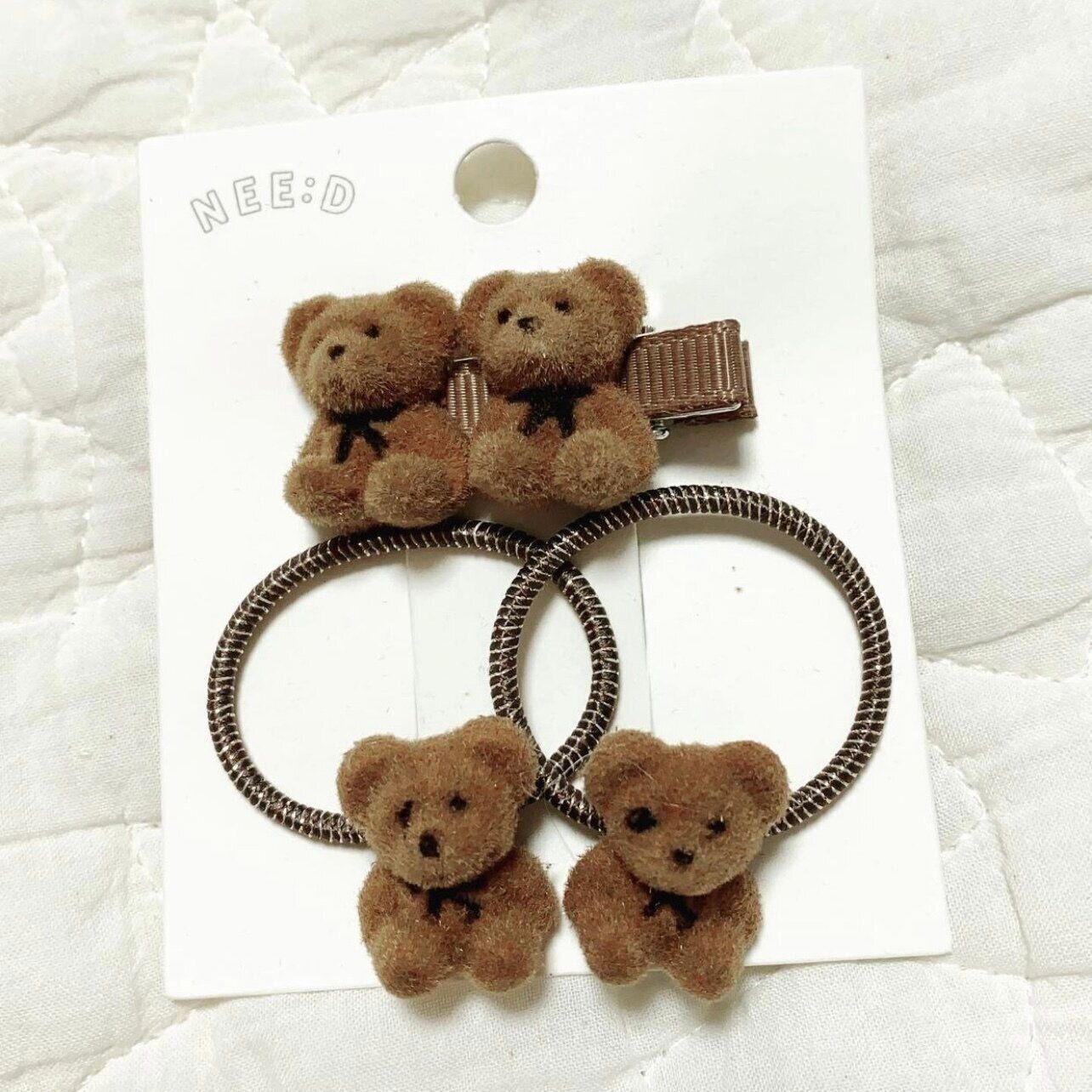 p._.q.0423mamaさんが3COINSで購入したのは、くまさんモチーフの付いたヘアゴムとヘアクリップのセット。フロッキーっぽい素材感が冬っぽさを感じさせますね。3COINSのアイテムは魅力的なものが多いので、お店に行くとついいろいろなものを買ってしまうんだそうですよ。