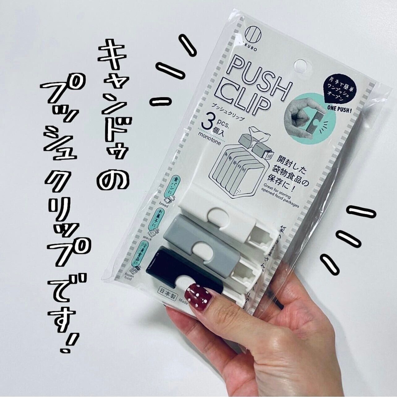 肩幅ひろ子さんが愛用しているのはキャンドゥで購入したプッシュクリップ。このアイテムを使えば、食パンの袋もワンアクションで簡単に留められちゃうみたい。もちろんパンの袋以外にもお菓子や砂糖の袋など幅広く使えますね。