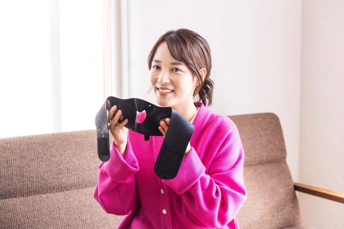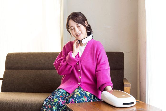 育児で疲れた体はその日のうちにケア。首に“モンデールのスマートネック”、手に“モンデールのハンドリフレip630”を使用。