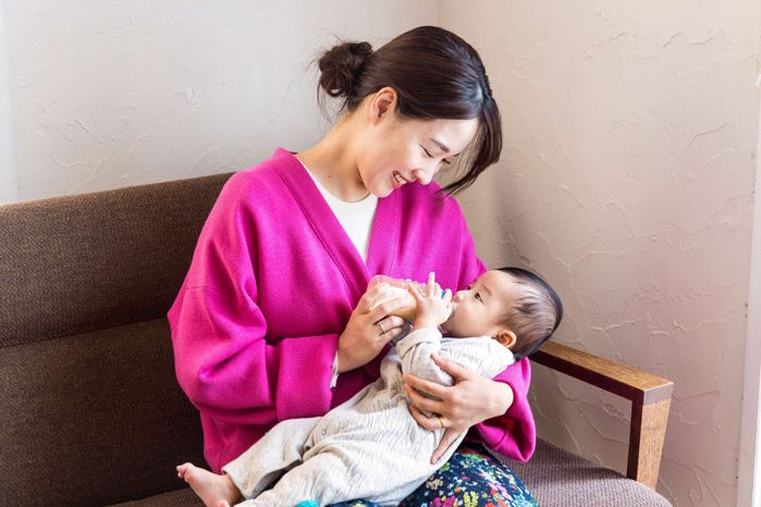 母乳の割合が多めですが、母乳とミルクの混合。調乳には電気ケトルが便利。仕事に行くときは搾乳をするので、搾乳器も数種類使い分けています。