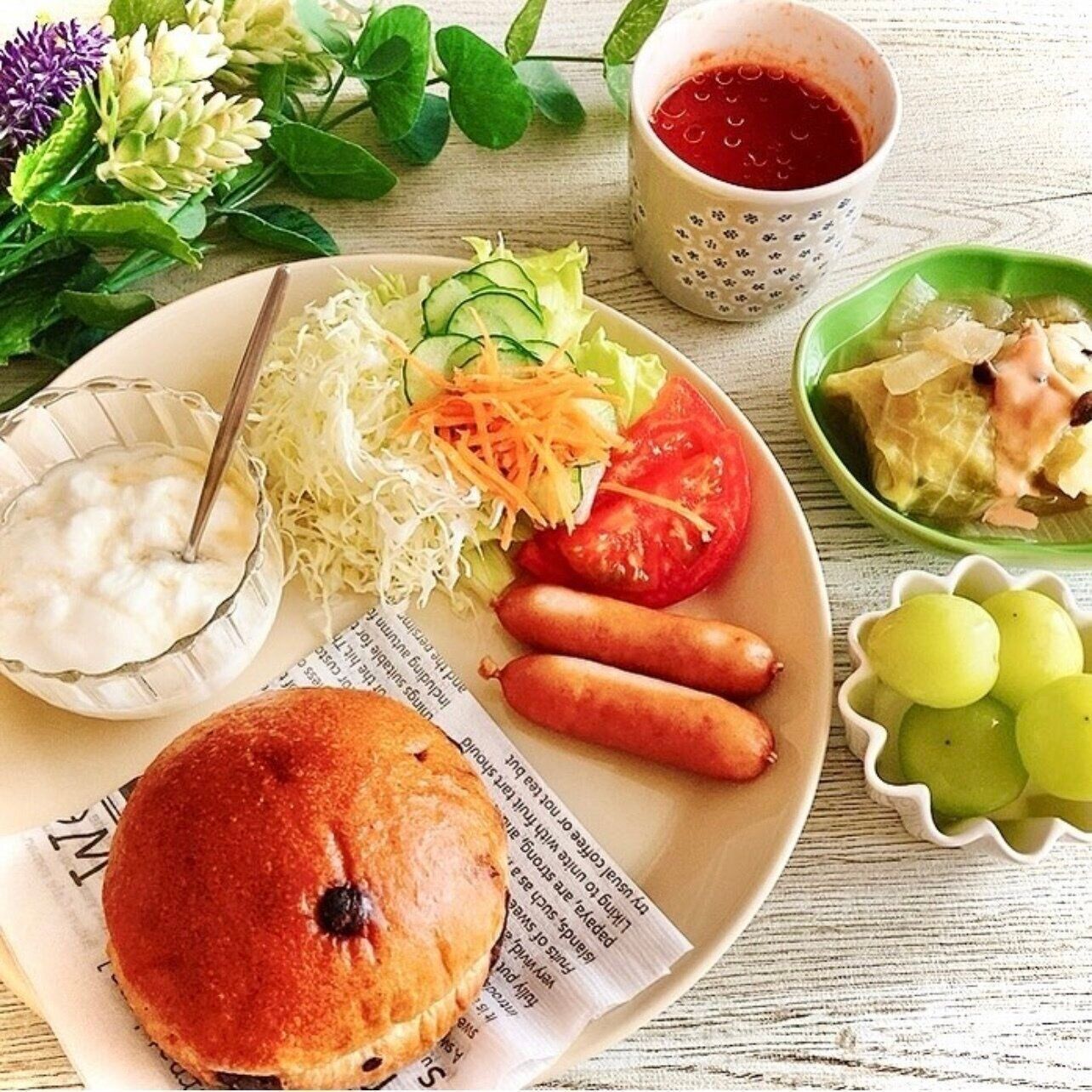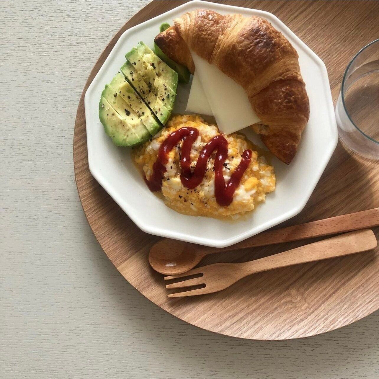 _mqimgさんのワンプレートモーニングの主食はセブンイレブンのクロワッサン。糖質控えめとは思えないほど普通のクロワッサンと変わらないおいしさだそうですよ。切れ込みを入れればチーズや海老、野菜やハムなどいろいろな食材がサンドできますね。