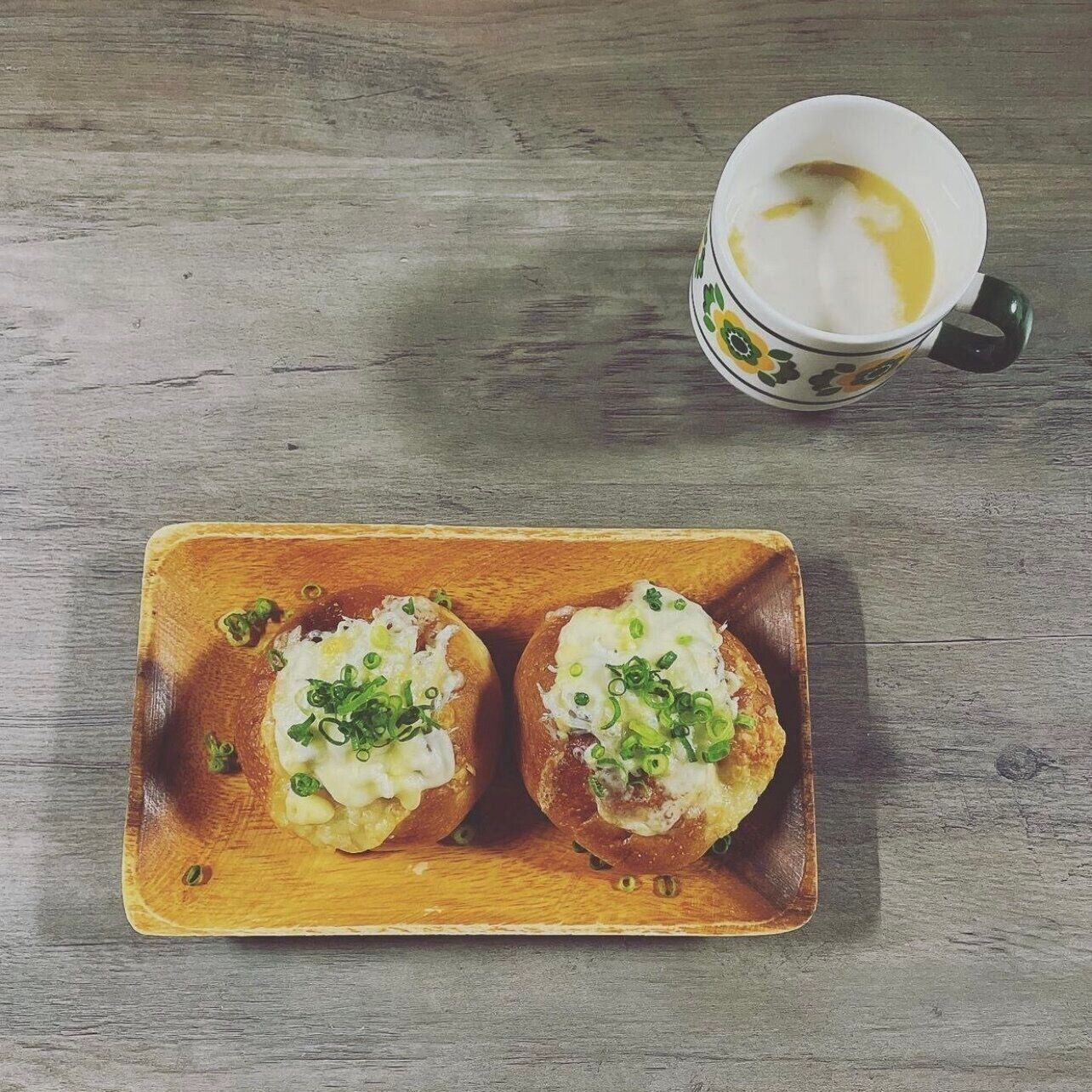 yukaさんが朝ごはんにチョイスしたのはセブンイレブンのチーズブレッド。しらすに追いチーズ、マヨネーズをプラスしたらチーズがとろっとするまでトースターで加熱。ネギをふりかければ彩りもきれいなアレンジになりましたね。