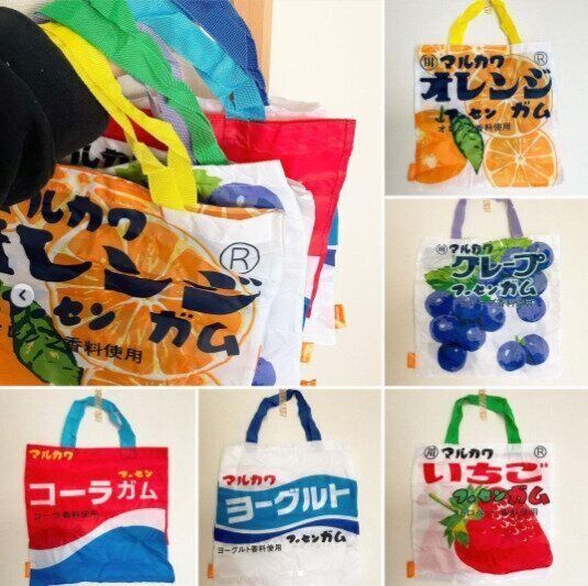 toytoygachaさんは持っていたら目立つこと間違いないフーセンガムのエコバッグをゲット。オレンジ、コーラ、オレンジ、ヨーグルト、いちごガムなどのパッケージが懐かしいですね。全種類ゲットしたそうです!うらやましい!