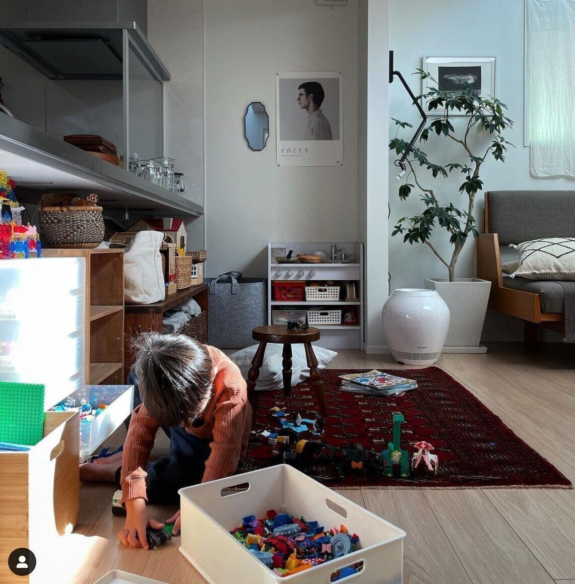 こちらはruru_houseさんのお宅の日常の様子です。リビングの一角はおもちゃで溢れているそうですが、子どもが遊んでいる様子が愛おしいんだとか。家族の近くでいつでも遊べる環境は子どもも安心できる場所になりそうです!