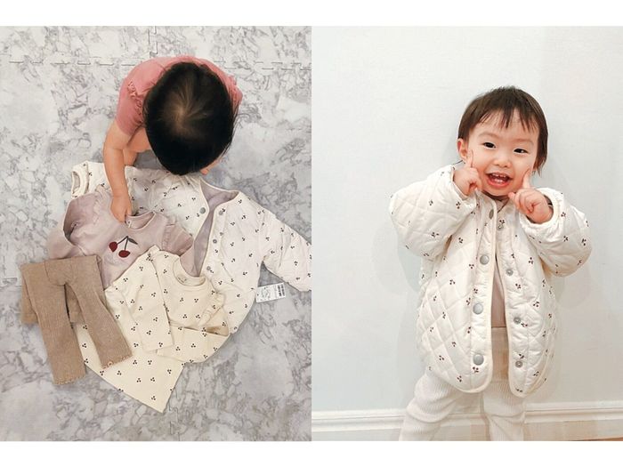 めいちゃんが生まれて、ファッション観が変わりました。出産前はワンピースやヒールの靴など、好きなものを好きなだけ楽しむ派。でも、育児が始まってしばらくの間は動きやすくて着脱がしやすい服と靴がメインになりました。とはいえ、やっぱりおしゃれを楽しみたい!そこで、親子リンクコーデで気分が上がる服を着るなどして、カフェや公園へ行っています。最近は、めいちゃんが安定して歩けるようになり、抱っこすることが減ったので、デザイン性が高いブラウスやアクセサリーも復活しつつあります。