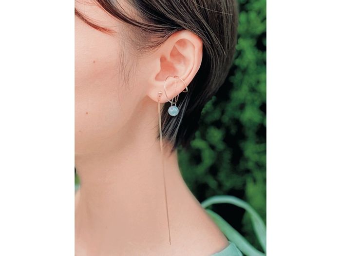めいちゃんが引っ張らなくなったので、ロングチェーンアクセサリーが復活!マスク生活で目覚めたイヤカフも増えました。これは「ラミエ」というブランド。