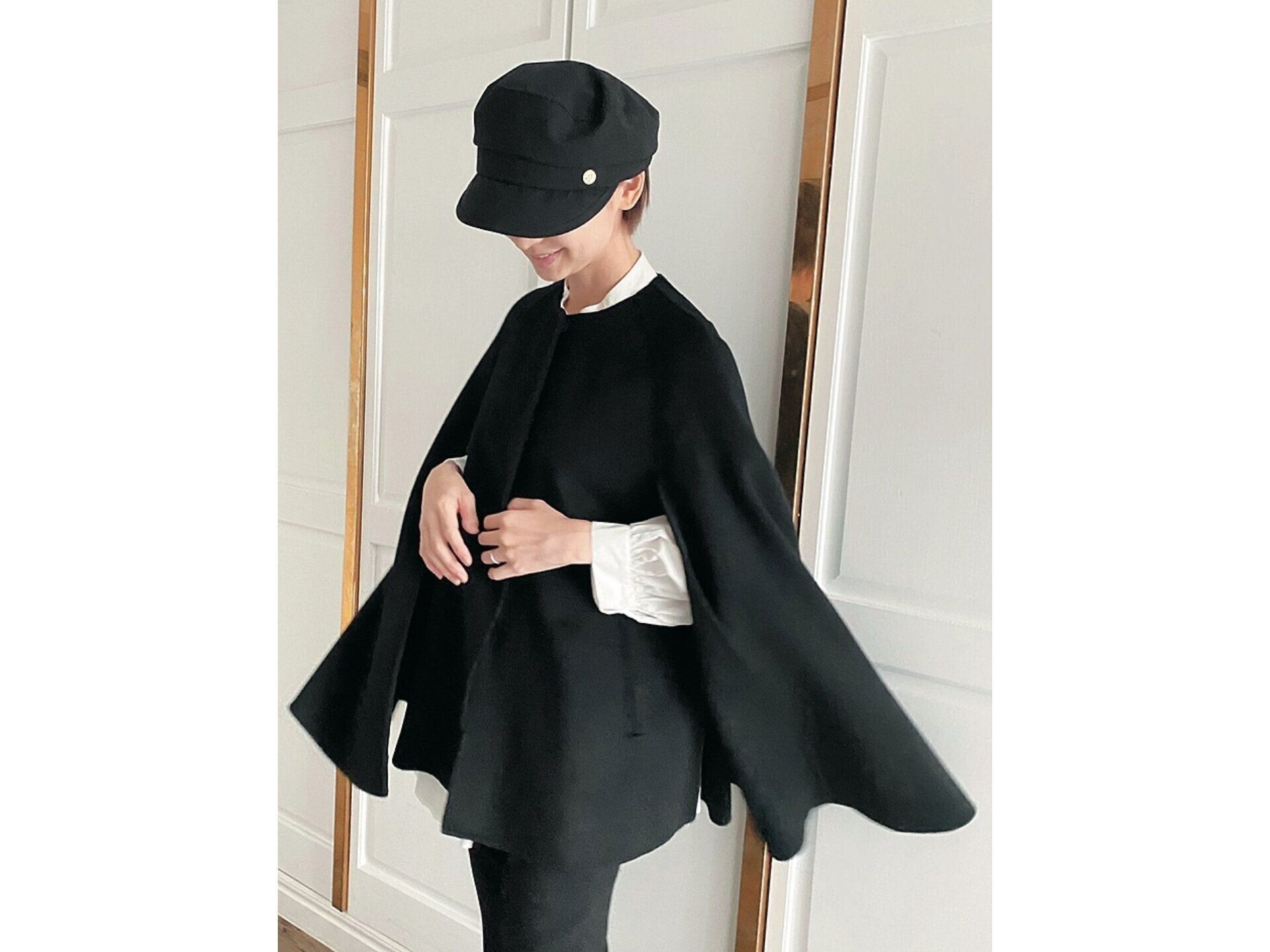 今年は、上級おしゃれが楽しめそうなコートを新調。ケープは、今季の流行の一つですよね。さらっとはおれるから意外とラク!「ルフィル」で購入。