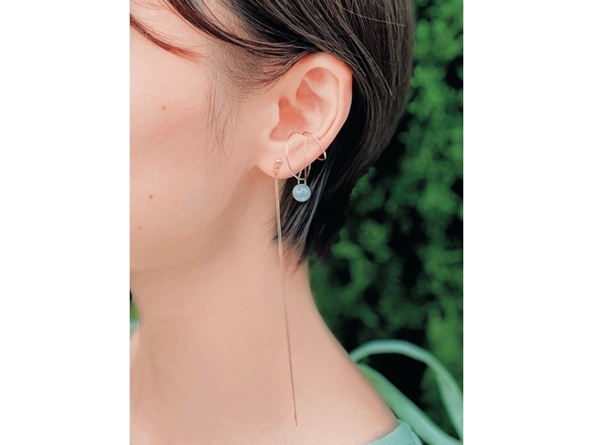 めいちゃんが引っ張らなくなったので、ロングチェーンアクセサリーが復活!マスク生活で目覚めたイヤカフも増えました。これは「ラミエ」というブランド。