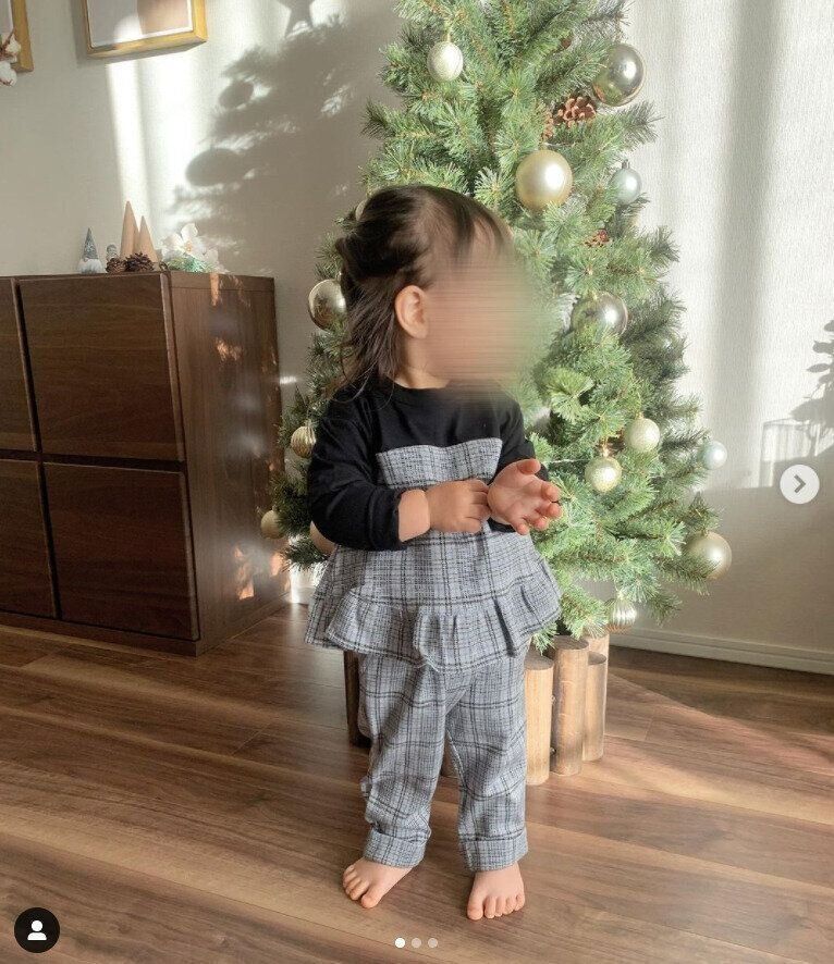 chiiさんは「チェックジャカードコンビT」と「ウエストリボンテーパードパンツ」を購入。別々のアイテムなのですが、このようにセットアップにしてもかわいいですね。娘さんのお友達もよく着ているようで、お気に入りのお洋服なんだとか。とってもお似合いです!
