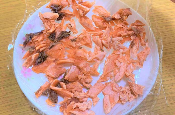 「たらや生鮭は、ゆでてから皮と骨を取り除き、ほぐして冷凍しています。冷凍するときは、ラップに薄く広げて、身同士がくっつかないようにすると、少量でも使いやすくておすすめです」(Yさん)