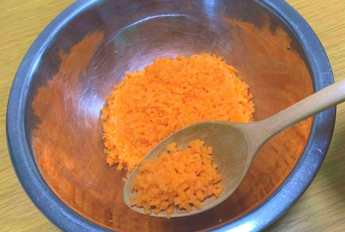 にんじんや大根のほかに、キャベツもこの方法でみじん切りにしてから、ゆでているそうです。