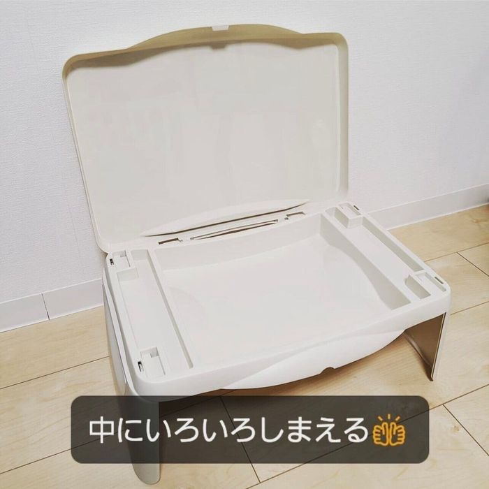 natural_maisonさんが3COINSで見つけたのはキッズデスク。天板を開けるとお絵かきグッズが収納できるので、ペンなど失くさずに持ち運ぶことができそうですね。もちろん脚は折りたたみ可能。こちらは1,650円商品です。