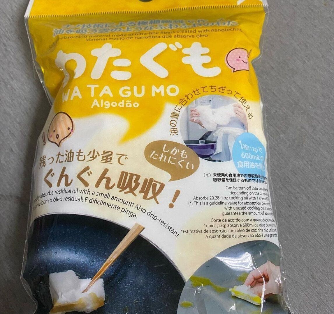cooking_naomiさんはこちらの「わたぐも」という商品をGET!ダイソーで人気の商品で、店舗では残り一つだったんだとか。油を使う料理をした際に、残った油を吸収してくれる便利グッズなんだそう♪