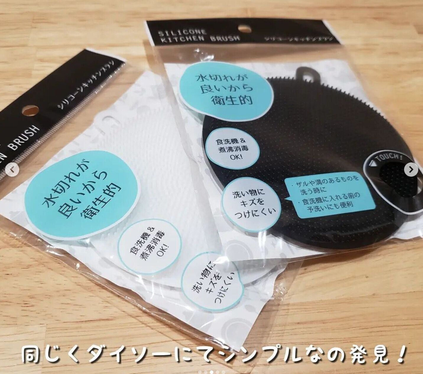 こちらは_heidi.2020_さんがダイソーでGETした「シリコーンキッチンブラシ」です。ハンバーグをこねた後のボウルやカレー鍋などをこちらのブラシで予洗いしておくことでスポンジが汚れるのを防ぐことができるそうです♪