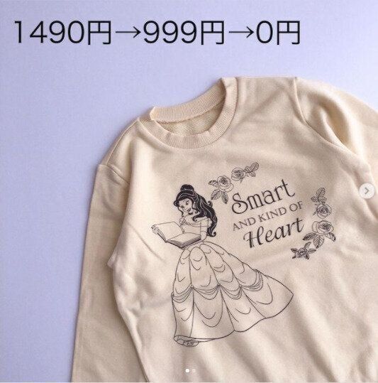 nonさんはベルの裏毛トレーナーを購入。クーポンを使って0円で購入できたのだとか。娘さんにとっては初めてのプリンセスのお洋服だったのでとても喜んでいたそうです。上品でかわいいトレーナーですね。