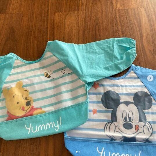HONAMIさんは手づかみ食べを覚え始めた息子さんにディズニーのお食事エプロンを購入。このエプロンは後ろボタンなので、自分で外してしまうこともなくお食事できるのだそう。たくさん食べられるとよいですね。