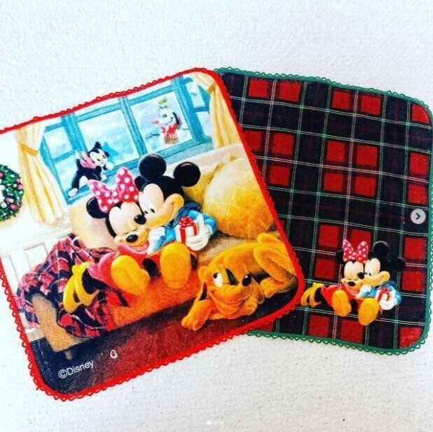 figarofigarocatさんは東京駅のショップでミッキー&ミニーのハンドタオル2枚セットを購入。どちらも冬らしい絵柄で今の季節にぴったりですね。ミッキーとミニーのしあわせそうな表情がかわいい!