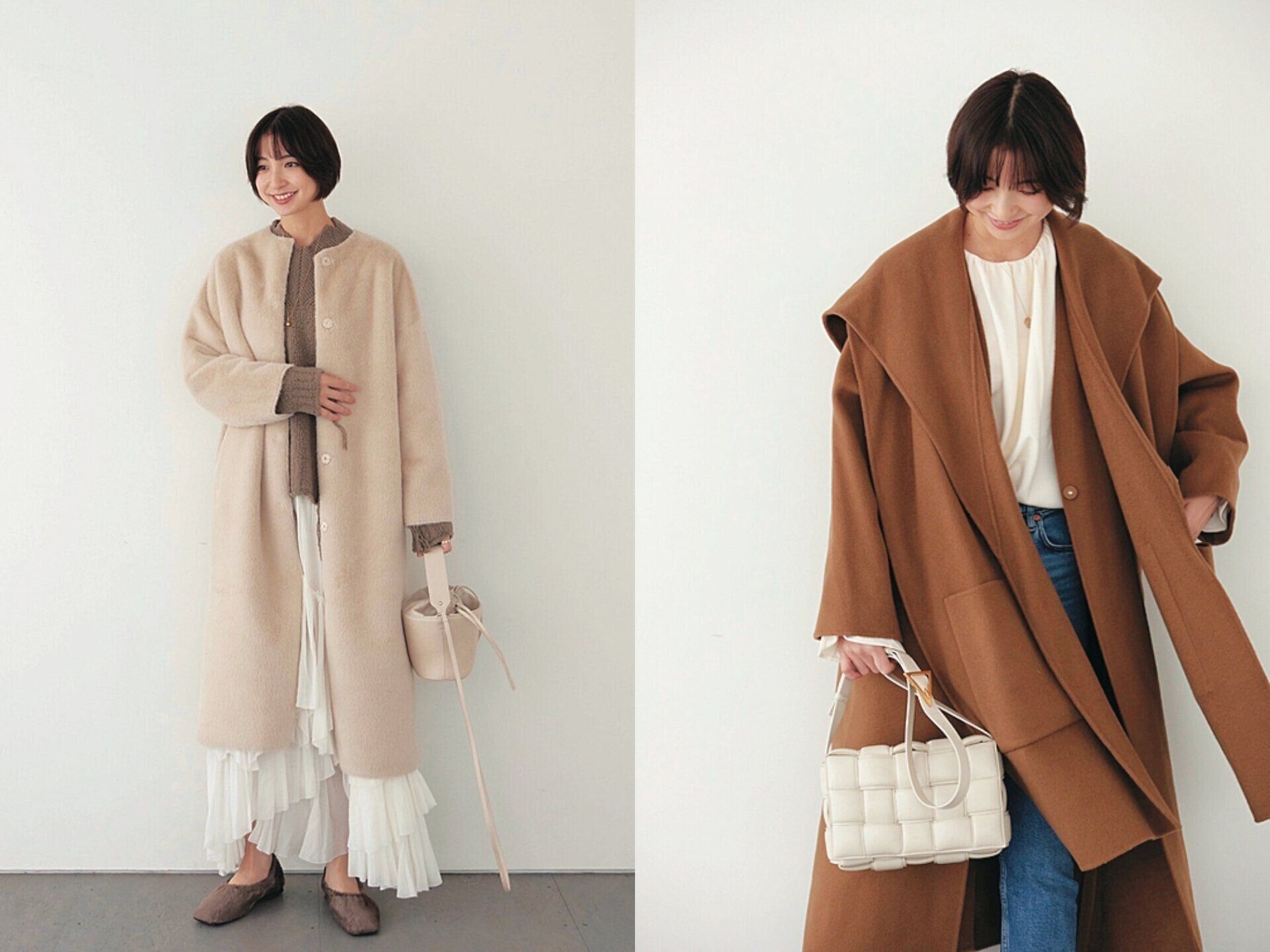 今年の冬は、こじはる(小嶋陽菜さん)のブランド「Her lip to」のファータイプ(写真:左)と、「ETRÉ TOKYO」のリバーコート(写真:右)を新調。キャメルは初挑戦!