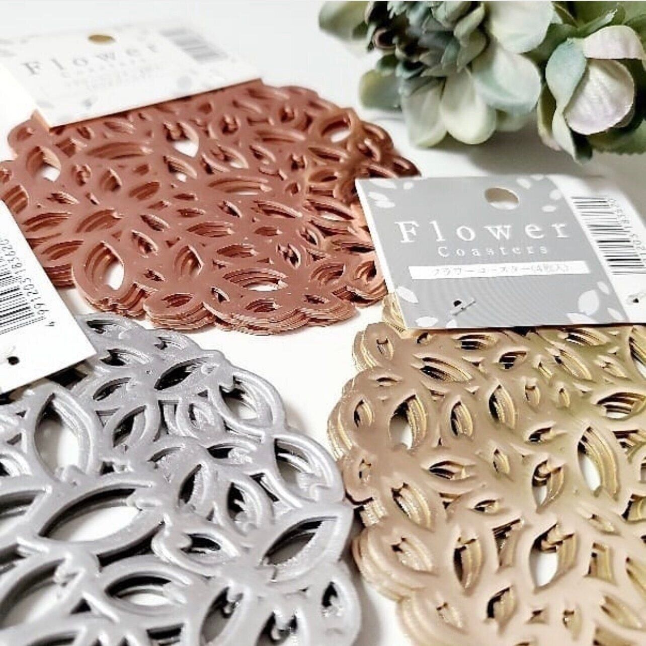 みっきーさんがキャンドゥで購入したのは4枚入りのコースター。お花がいくつも重なっているようなデザインで実際にグラスの下に敷いても、インテリアとしても使い方いろいろ。3色展開で全種類ゲットしたそうですよ。