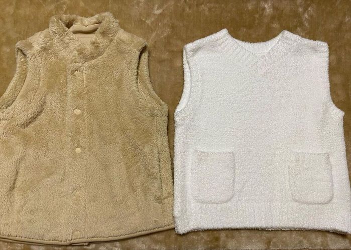 t0907aさんはこちらのベストを2枚購入。左のベストは110サイズをチョイスし、990円と値下げされていたようですよ。右のベストは新作なんだとか。ユニクロのベストはしっかり洗えるとのことで、お気に入りの様子。どちらも春先まで使えそうですよね。