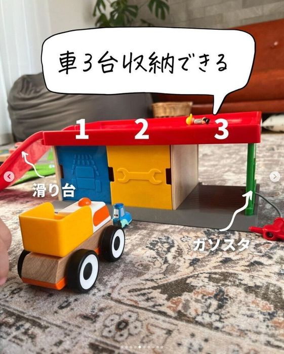 poyo__poyoyoさんはLILLABO(リラブー)シリーズのガレージ&レッカー車を購入。このシリーズは大人気のようで、子どもが好きな工夫が多いんだそう。「知育要素があって良い!」とお気に入りの様子。とっても楽しめそうなおもちゃですよね!