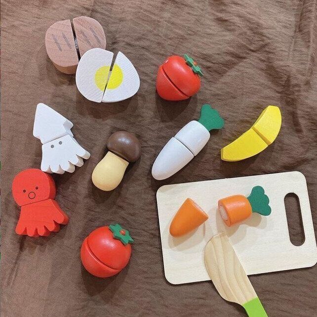 レジや食材、カゴやお金がセットになった、お店屋さんごっこのおもちゃです。折りたたむとバッグのように持ち運ぶこともできるそうですよ♪ こちらは1セットあたり550円で販売されているようです。