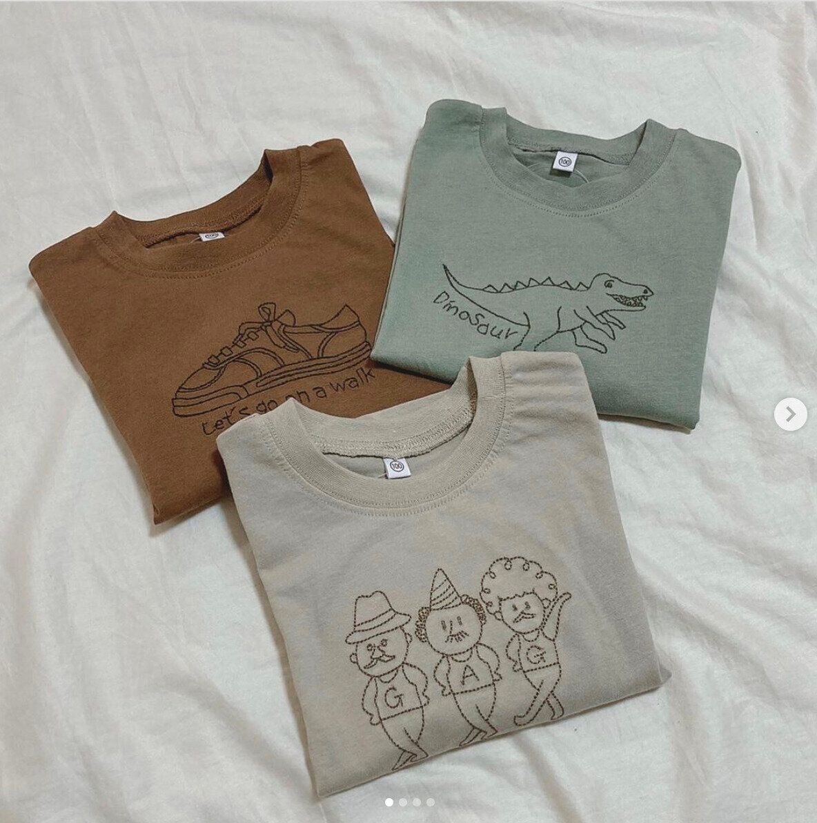 こちらは、harumamaさんが税込500円以下というプチプラで購入したというロンT。ゆるかわな刺繍のイラストと、くすみカラーがおしゃれでかわいいですよね。ボトムスとの組み合わせ次第で春っぽいコーデもできそう。