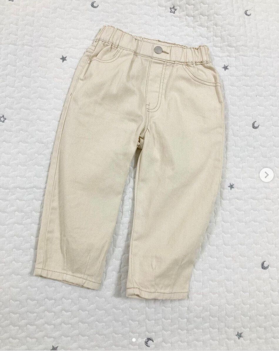 cocorigumiさんは、白デニムが欲しくて探していたところ西松屋で発見!裾にタックがついていて綿100%なんだそうです。春コーデに合いそうな生成り色がおしゃれで気に入っているのだとか。太めのシルエットも可愛いですね。