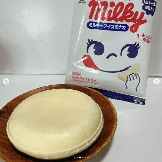 ミキアイスさんが購入したのは「ミルキーアイスモナカ」。白くてまるいモナカ皮の中にはミルキー風味のアイスと練乳が入っているのだとか。コクがあってあまく、もちもちしておいしかったそうです。しっかりミルキーを感じられそう!こちらは149円(税込)の商品のようです。