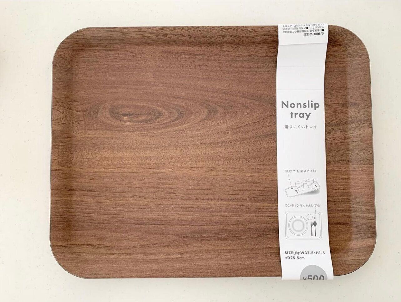 aiさんが3COINSで購入したのは、滑りにくいトレイ。傾けても食器が滑りにくいので、お子さんにお手伝いを安心して頼めるんだそうですよ。ランチョンマット代わりとして使うこともできるみたい。こちらは550商品のようです。