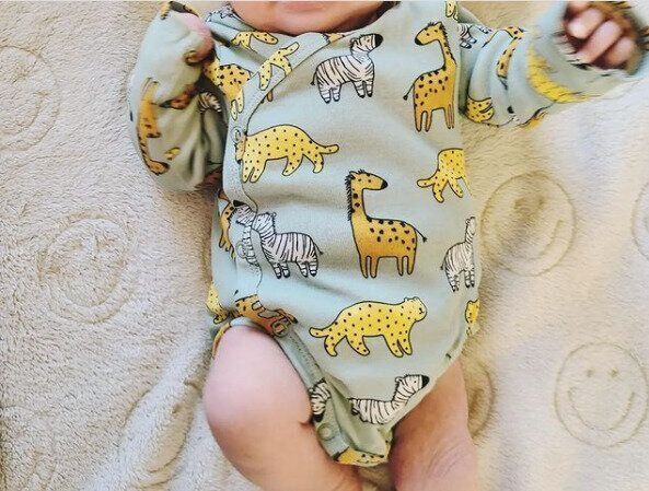 ___sa412さんベビーが着ているのは、H&Mのアニマル柄ロンパース。動物のイラストがとってもキュートですよね。今からでも着られますが、優しいくすみグリーンは春先のベビーコーデにもおすすめ!