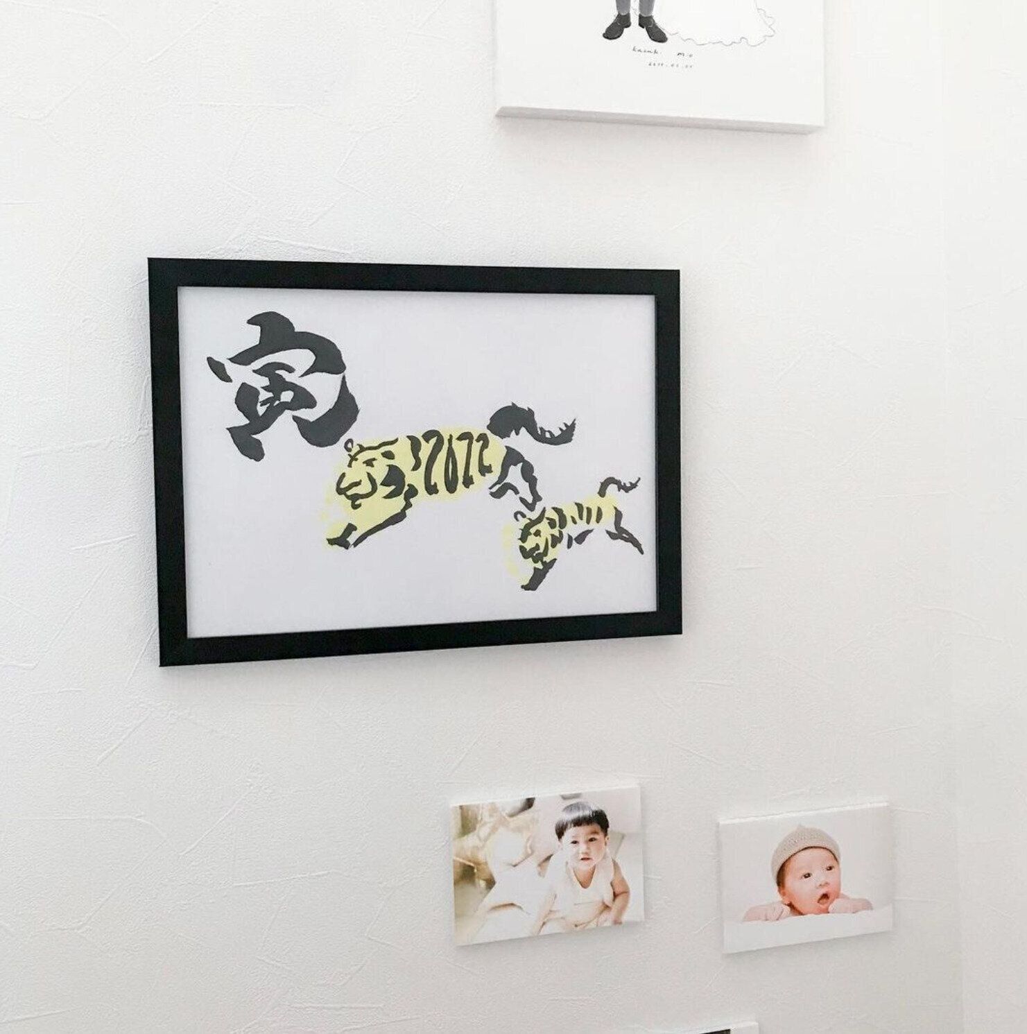 こちらは___my231さんのお宅の様子です。子どもの足形をとったあとに、ご主人がトラの身体にアレンジした作品だそう。こちらの方はお子さん達の足形や手形をたくさん残していきたいと考えているんだとか!