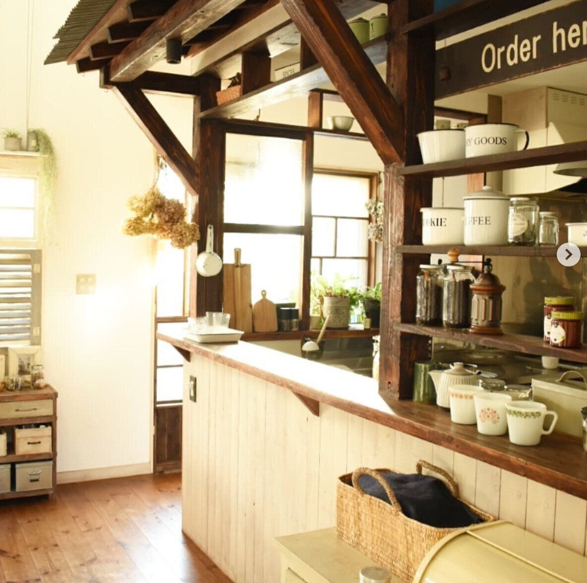こちらはbloomさんのお宅のインテリアです。マグカップやコーヒーミルなどの小物を見えるように配置することでカフェらしい雰囲気になっていて素敵!見せる収納を上手に活用したいですね。