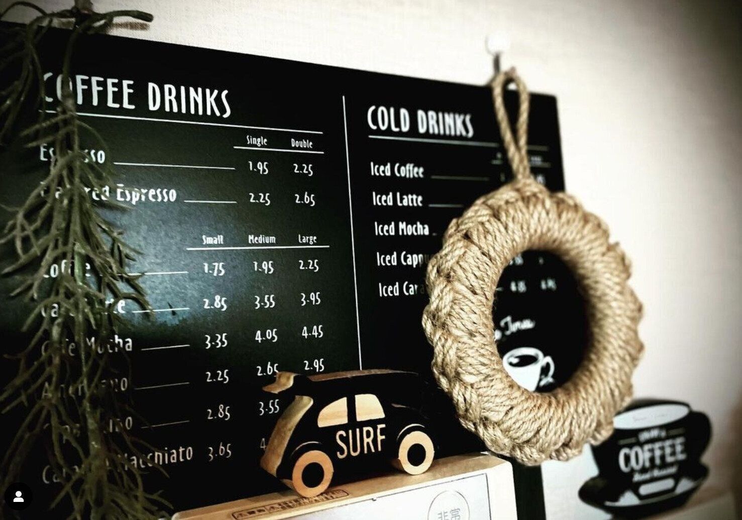 こちらはハマーさんのお宅のインテリアです。3COINSで一目惚れしたという鍋敷きを買ったそうで、壁に飾るだけでもおしゃれな雰囲気になるんだとか♪ メニュー看板や車のおもちゃも遊び心があって可愛いですよね!