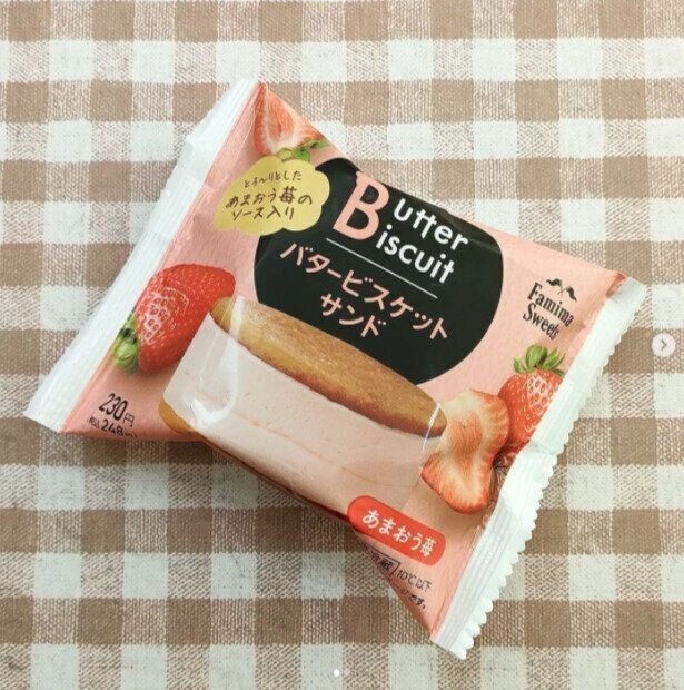Mihoさんが購入したのは、あまおう苺味の「バタービスケットサンド」。クリームの量が多くてもくどくなく、最後までおいしく食べられたのだとか。バターがきいたビスケットのサクほろ食感もよかったそう。こちらは248円(税込)の商品のようです。