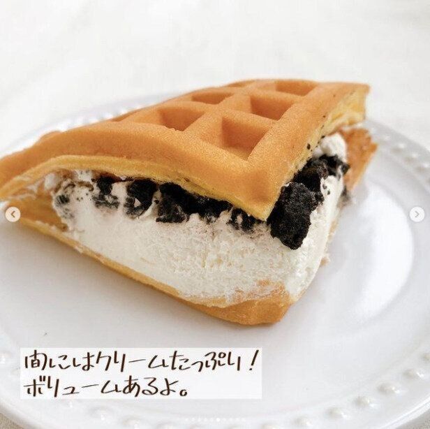 いちかさんが購入したのは「ワッフルケーキ(クッキー&クリーム)」。中のクッキーはしっとり、クリームはコクがありおいしかったそうです。こちらは178円(税込)の商品のようです。