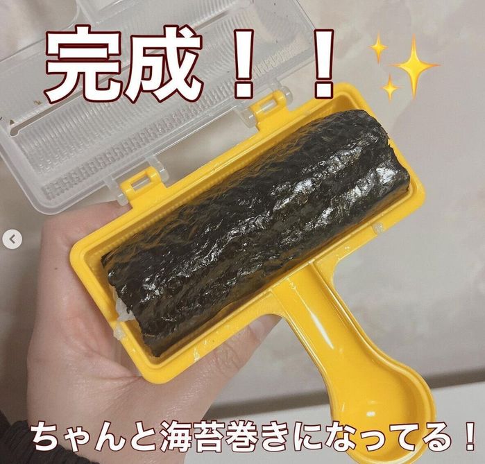 benri_itemsさんがダイソーで購入した「ふりふりのり巻き型」。中にご飯を入れて振ったあと、海苔を差し込んで再度振ると海苔が巻き込まれていき、簡単にキレイな海苔巻きが作れるそうです。子どもと一緒に作るのも楽しそうですね♪