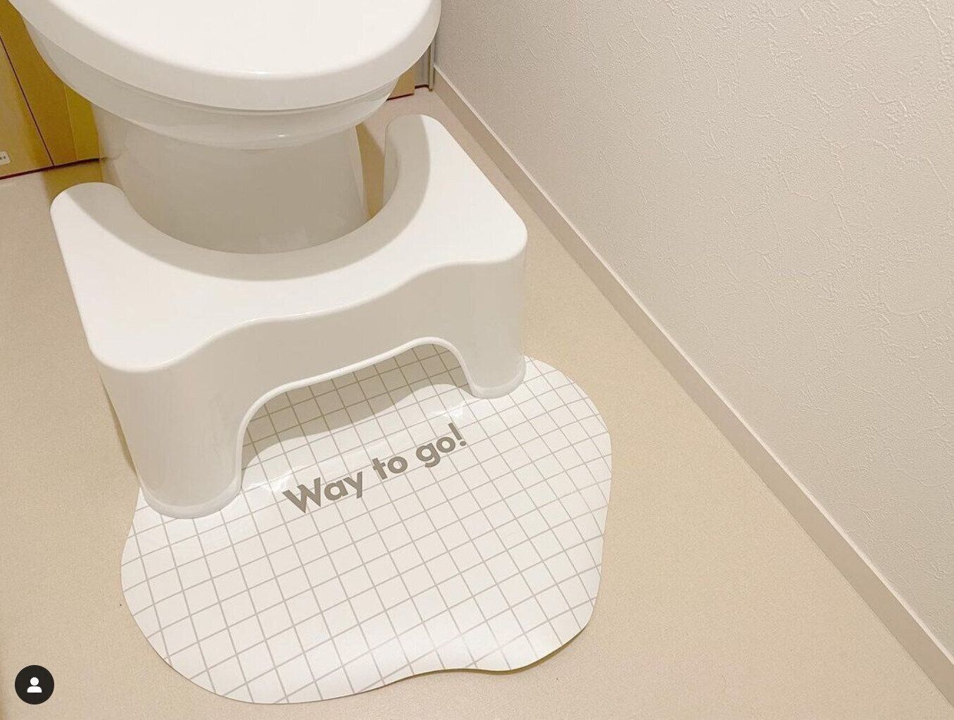 こちらはohisama_to_soraさんが見つけたトイレマット。以前はタオルを敷いて頻繁に交換していたそうですが、見た目や使い勝手の悪さからこちらのマットを購入したとのこと。拭いて使えるようなので衛生的ですよね◎