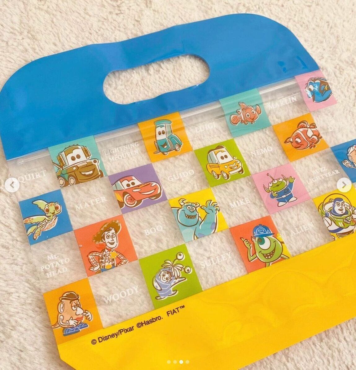 こちらはダイソーで販売されている、ピクサーシリーズの「底マチクリアジップハンドルバッグ」です。底にマチがあるので、物を出し入れしやすそうですね♪ プレゼントを入れるギフトバッグとしても使えるのではないでしょうか?