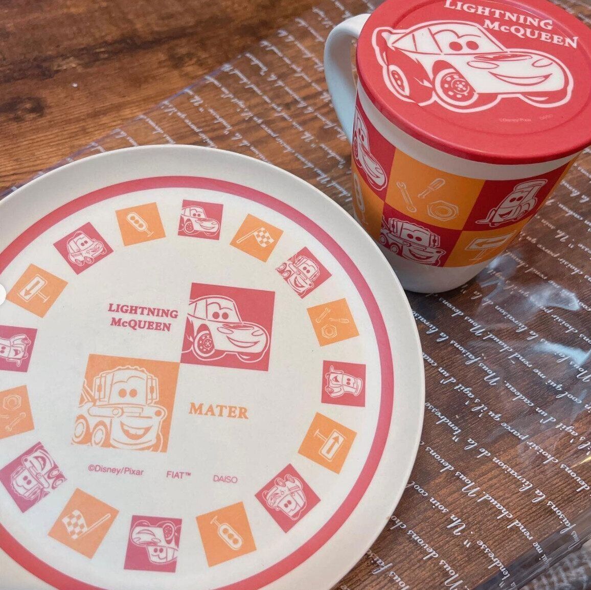 pixar_kiraraさんがダイソーで購入したのは、こちらの「バンブーファイバー蓋付マグカップ」と「バンブーファイバープレート」。どちらも軽い素材なので、子どもでも使いやすそうですね♪ マグカップは220円、プレートは110円で販売しているようです。