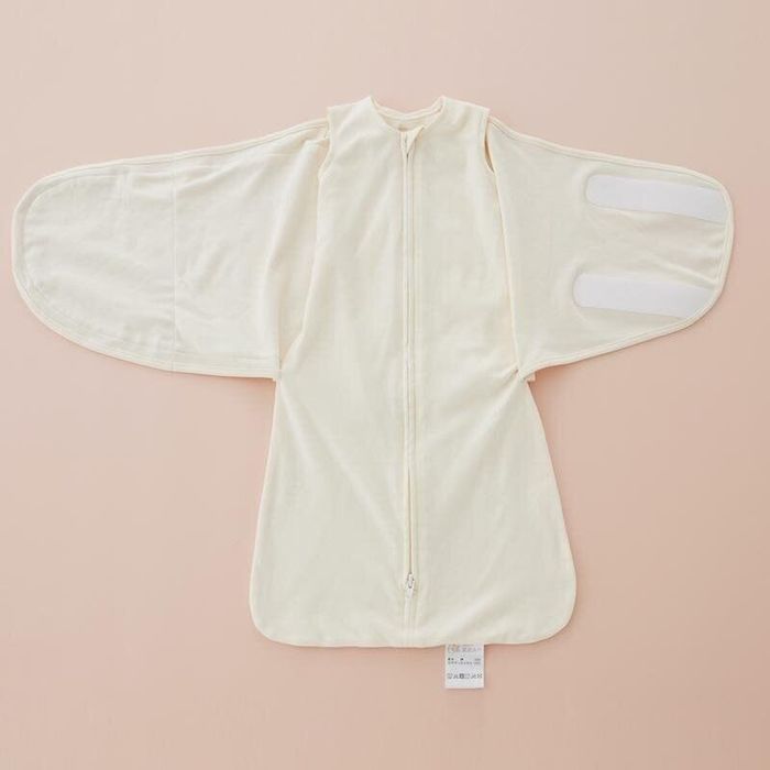 上半身をやさしく包んだまま、おむつ替えができるデザイン。寝返り後でも、手を出して使えるため、6カ月ごろまで使用可能。