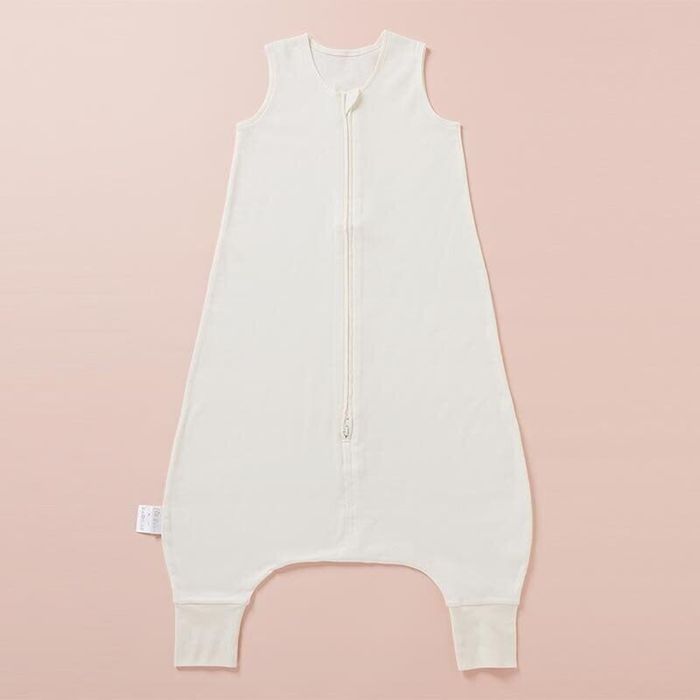 コットン100%。下から開けられるファスナーで夜中のおむつ替えも安心。6カ月ごろ~1歳ごろまで使用可能。