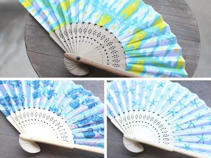 (上)扇子15cmシロクマ、(左下)扇子15cmキャット、(右下)扇子15cmスターフィッシュ