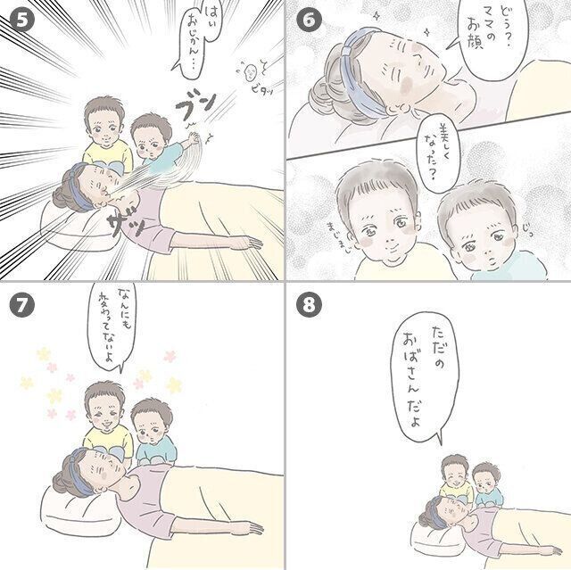 <お母さんのパックに興味津々の三男、四男くん>