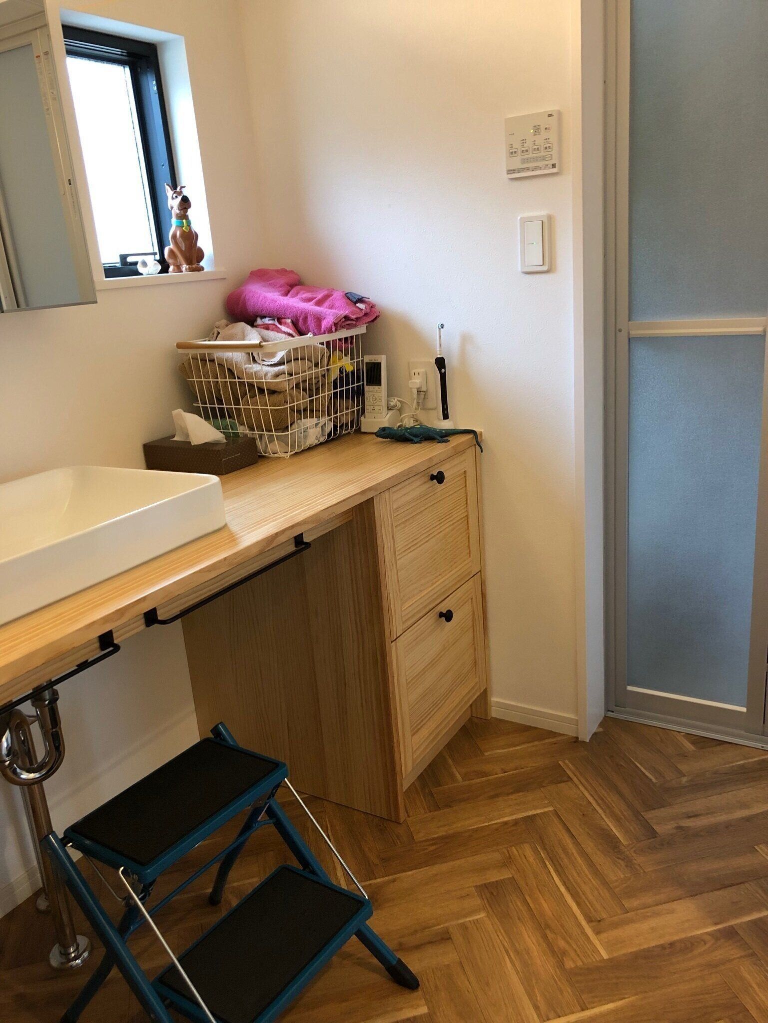 「家事や育児がスムーズにできるように家の中の動線を考えた結果、浴室、洗面脱衣所、ランドリールームは2階の1カ所に集約することにしました。子どもたちは洗面脱衣所で服を脱いだら、自分で洗濯機へ入れることができます。洗濯機を回したら、その場で室内干し、乾いたらそのまま収納と、ワンストップ化が実現できたんです。