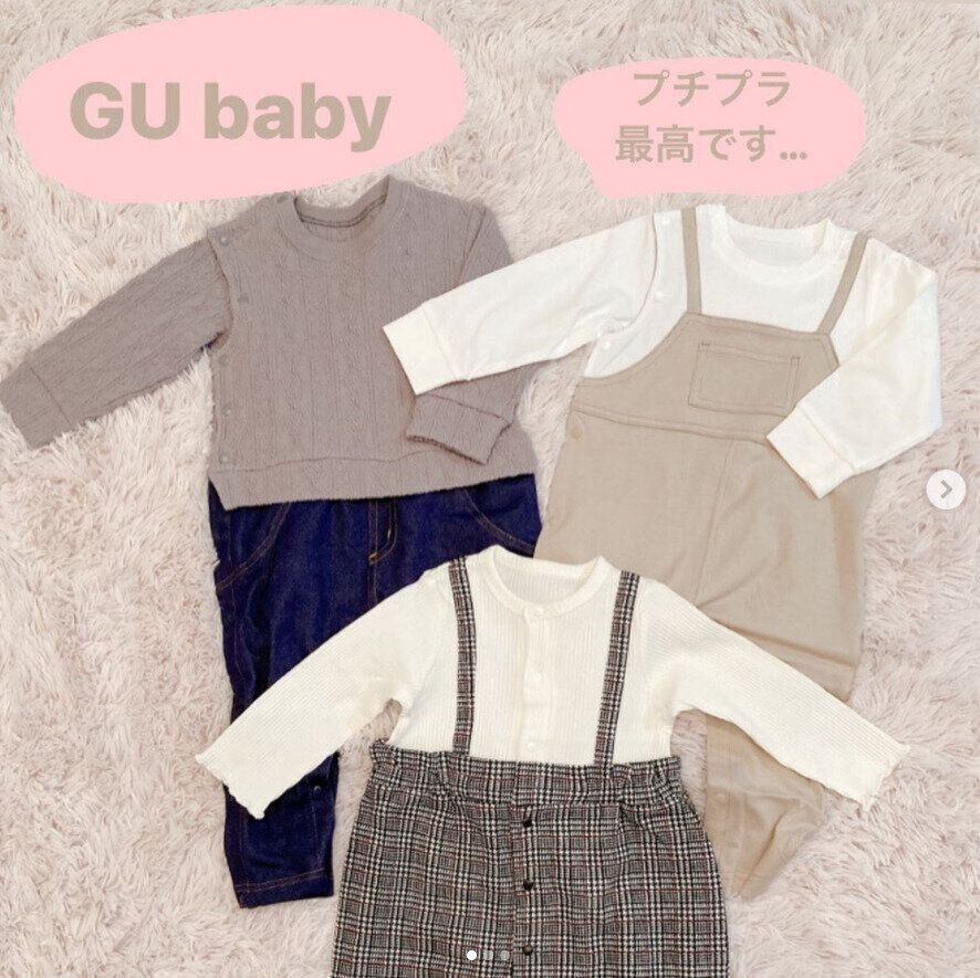 ゆきゆみさんは、こちらのGU babyのセパオール3点を購入したようですよ。1着2,000円以内で買えるそうで、お手頃価格に驚いている様子。「プチプラ最高です」と、とってもお気に入りなんだとか。どれも前開きタイプなので、脱ぎ着もカンタンで良いですよね。