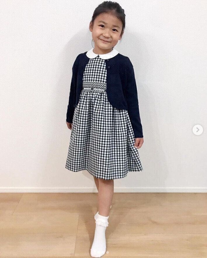 Minamiさんはこちらのバーバリーのワンピースと、ZARAのボタン ボレロ ジャケットをお子さんに。高級感のある素敵なコーデですよね。この日は卒園式だったようで、お子さんはこのあと沢山泣いてしまったんだそう。これから卒園式を迎える方は、始まる前に写真を撮っておくことをオススメします!とのことですよ。