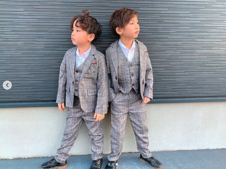 _akane_72さんは、Lanaul(ラナウル)のセットアップを。ジャケット、ベスト、パンツのグレンチェックデザインが、都会的でかっこいいですよね。白シャツ、黒シューズでグッと引き締まった雰囲気に。お二人並ぶと見惚れてしまいますよね!